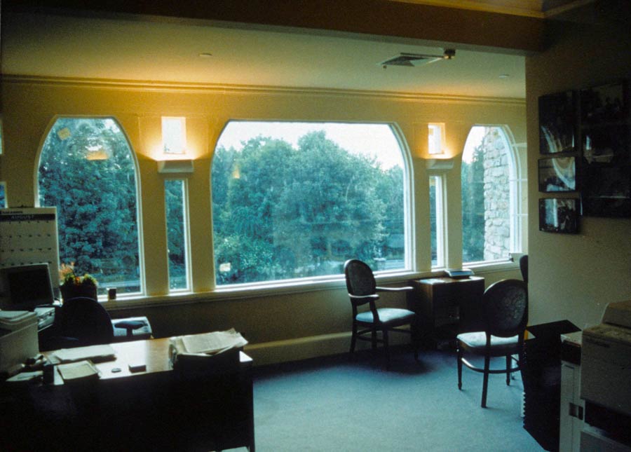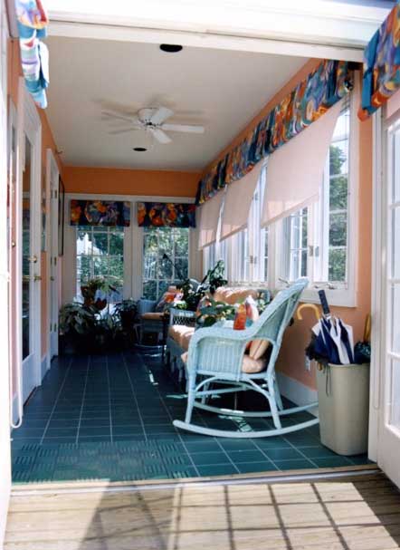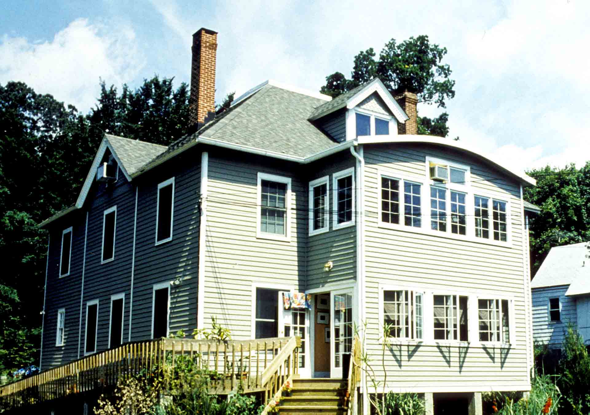 This solution was to create a common entrance through a non-heated, enclosed, 1st-floor porch at the front of the building enabling everyone to enter and exit through the same entrance, whether able-bodied, wheelchair- or hospital gurney-bound. Existing 1st- and 2nd-floor porches were enclosed to create additional connections between the sides, and an elevator was installed to facilitate care-giving. The project attracted great interest from the local interior design community. Each room within the house was designed and furnished by a different designer, to the great delight of residents and staff alike. Wheelchair accessibility throughout the grounds was enabled by the design and installation of wheelchair accessible pathways – firm surfaces in the grass, similar to walkways.