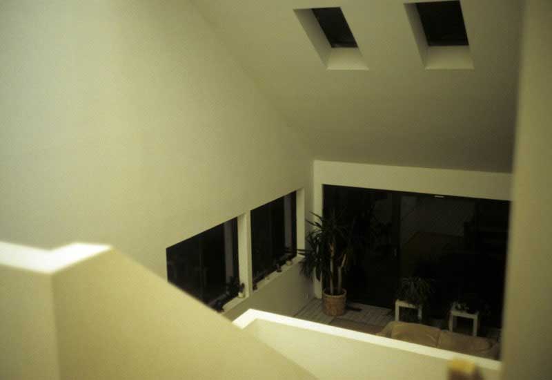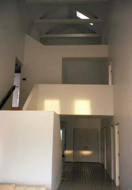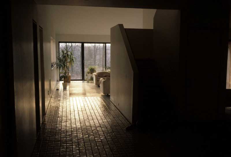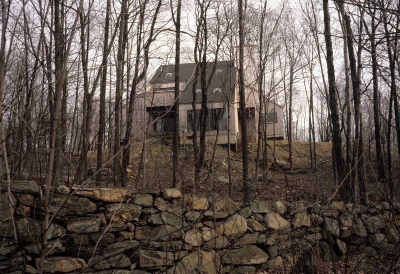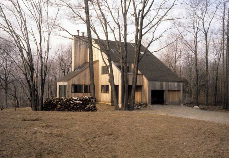 Built on a hill, this home is shaded during the summer months by deciduous trees on the south and west. And in the winter months, with the leaves down, it takes advantage of passive solar gain from the south and west. The site also offered open, northern light for a studio. The interior is light and open.